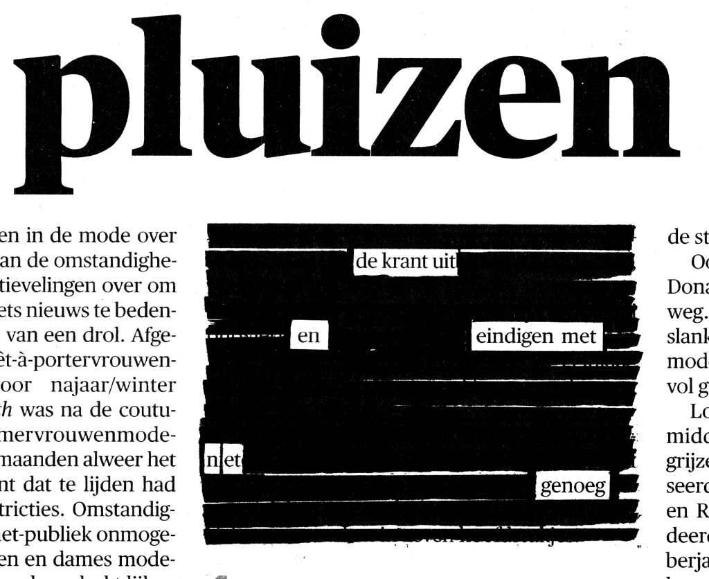 Pluizen Gepost door:Gemarkeerd maart 13, 2021 Leave a comment on Pluizen De essentie van stiftdichten. Uit De Morgen van 12/03/21 Dit delen: Klik om te delen op Facebook (Opent in een nieuw venster) Facebook Klik om te delen op X (Opent in een nieuw venster) X Vind-ik-leuk Aan het laden... Gerelateerd